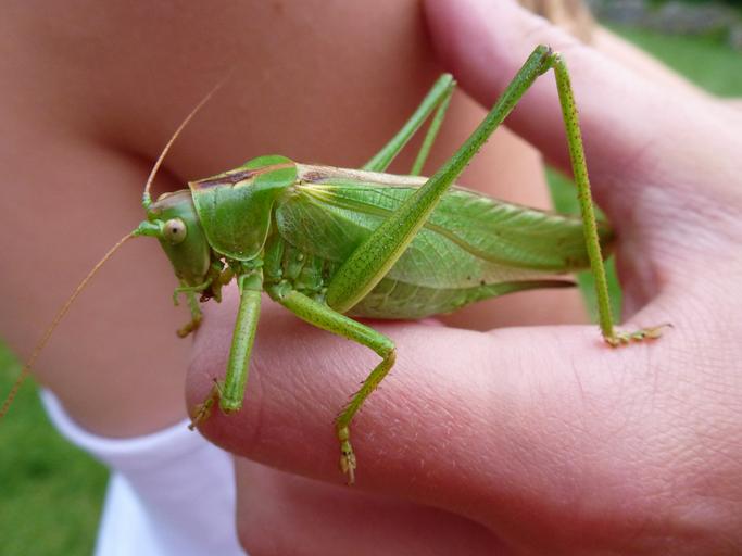 Keywords: grasshopper great green tettigonia viridissima heupferdchen hand insect close