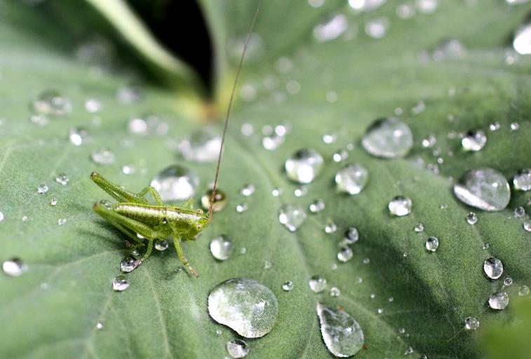 Keywords: grasshopper leaves green nature water drop of water drip macro tettigonia viridissima macro photography animals insect creature frisch garden grasshoppers close plant