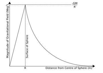 Keywords: Grav field sphere.svg en Graph of gravitational field around and inside a spherical mass against distance from the centre of the mass Own Sjlegg 2009-04-23 Gravitation