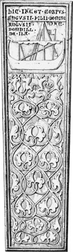 Keywords: Grave slab of Aonghus, son of Aonghus Mac Domhnaill of Islay.png Grave slab of Aonghus son of Aonghus Mac Domhnaill of Islay The identity of the man commemorated by this stone is uncertain One possibility is that it refers to Aonghus Óg Mac Domhnaill Lord of Islay died 1314×1318/c 1330 son of Aonghus Mór mac Domhnaill Lord of Islay died c 1293 Another possibility is that it refers to a son of Aonghus Óg Mac Domhnaill died c 1490 Graham HD 1850 Antiquities of Iona London Day Son The image appears on plate x The image is titled Tomb of Macdonald of Islay in St Oran's Chapel < 1851 author PD-old-70 Aonghus Óg Mac Domhnaill Artifacts associated with Iona |