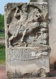 Keywords: Gravestone Reburrus Xanten 230.jpg de Photo aus dem Archäologischen Park Xanten Grabmal des Reburrus REBVRRVS FR i A/TTON i S f ilius EQVES AL a / FR ON T ONIANA Reburrus Sohn des Friatto Reiter der Ala Frontoniana Der Reitersoldat Reburrus war germanischer Herkunft und diente in einer Hilfstruppeneinheit des römischen Heeres Die Ala Frontoniana war im ersten Jahrhundert erst in Bonn dann in Moers-Asberg stationiert Reburrus ist als Sieger über die Germanen dargestellt nl Foto uit het archeologisch park Xanten Latijnse inscriptie zie Duitse versie Grafsteen van Reburrus zoon van Friatto ruiter van de Ala Frontoniana Reburrus was van Germaanse afkomst en diende in een hulptroepeneenheid van het Romeinse leger De Ala Frontoniana was in de eerste eeuw eerst in Bonn dan in de omgeving van Moers Asberg gestationeerd Reburrus is als overwinnaar van de Germanen voorgesteld en Photo taken in the Archeological Park Xanten Latin inscription see German text Tombstone of Reburrus son of Friatto horseman of the Ala Frontoniana Reburrus was of German descent and served in an auxialiary unit of the Roman Army In the 1st century the Ala Frontoniana was stationed first in Bonn then in the area of Moers-Asberg Reburrus is depicted as a victor over the Germans Copia del epitafio de Bonn realizada para el Parque Arquológico de Xanten la antigua Vetera correspondiente a la inscripción AE 1963 49 cuyo texto se desarrollla como REBVRRVS FR i A/TTON i S f ilius EQVES AL ae / FRONT onianae AN norum --- STIP endiorum ------ Own Ad Meskens 2009-04 Notification/copy of publication is appreciated a mention to Ad Meskens be included For the tombstone PD-old-100 cc-by-sa-3 0 GFDL Ancient Roman funerary steles in Germany Ancient Roman reliefs in North Rhine-Westphalia Ancient Roman inscriptions in Xanten LVR-Archäologischer Park Xanten Roman monuments in Xanten Ancient Roman military people Ala Frontoniana AE 1963 0049 |