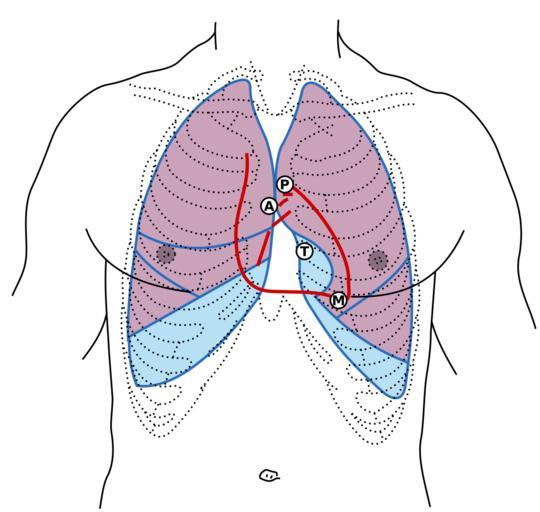 | Keywords: Gray1216 modern locations.svg Front of thorax showing surface relations of bones lungs purple pleura blue and heart red outline Heart valves are labeled Mitral Bicuspid Tricuspid Aortic Pulmonary Figure 1216 from Gray's Anatomy It has been updated to reflect modern thinking on where heart sounds are best heard Other fields 1 Information field Ucfirst Plate 1216 before 1858 Henry Gray Anatomy of the Human Body See Book section below 1216 modernized User huckfinne Gray1216 svg Creator Henry Vandyke Carter Gray1216 svg Mysid derivative work Huckfinne Book Gray's Anatomy Gray's Anatomy plates 1216 Pd-old-100-1923 SVG Gray's Anatomy plates Heart organ |