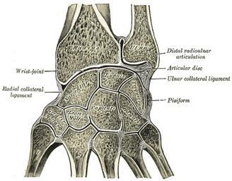 | Keywords: Gray336.png Vertical section through the articulations at the wrist showing the synovial cavities Other fields 1 Information field Ucfirst Plate 336 before 1858 Henry Gray Anatomy of the Human Body See Book section below 336 Creator Henry Vandyke Carter Book Gray's Anatomy PD-old-100-1923 Gray's Anatomy plates 0336 Wrists Joints Human ulna Radius bone Human carpal bones Metacarpus Carpus Trapezium bone Trapezoid bone Pisiform bone Triquetral bone Scaphoid bone Capitate bone Hamate bone Ulna Lunate bone Plane joints Short bones |