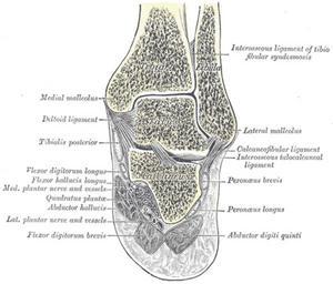 Keywords: Gray357.png Coronal section through right talocrural and talocalcaneal joints Other fields 1 Information field Ucfirst Plate 357 before 1858 Henry Gray Anatomy of the Human Body See Book section below 357 Creator Henry Vandyke Carter Book Gray's Anatomy PD-old-100-1923 Gray's Anatomy plates 0357 Anatomy of the human foot Tibia Fibula bone Talus Calcaneus Ankles Joints Human tarsus |
