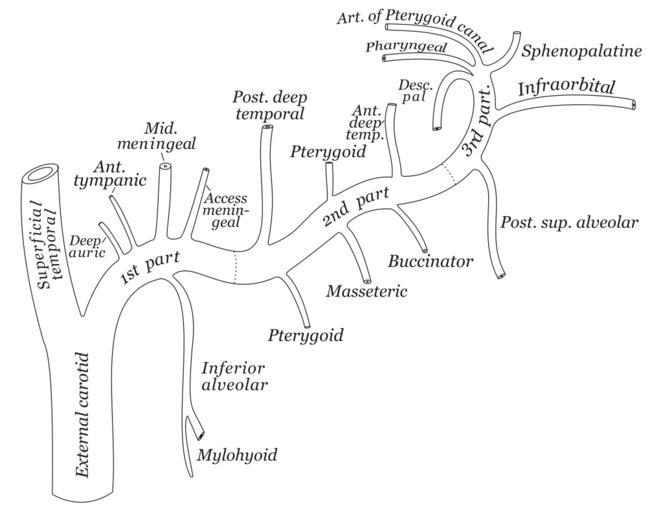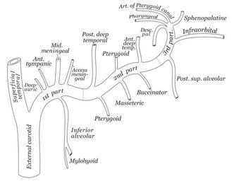 Keywords: Gray511.svg validSVG en Plan of branches of maxillary artery es Ramas de la arteria maxilar Other fields 1 Information field Ucfirst Plate 511 before 1858 Henry Gray Anatomy of the Human Body See Book section below 511 vectorized from File Gray511 png Creator Henry Vandyke Carter File Gray511-es svg Spanish version Book Gray's Anatomy Gray's Anatomy plates Pd-old-100-1923 SVG Gray's Anatomy plates Arteria carotis externa