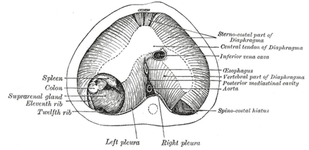 Keywords: Gray57.png The thoracic aspect of the diaphragm of a newly born child in which the communication between the peritoneum and pleura has not been closed on the left side; the position of the opening is marked on the right side by the spinocostal hiatus After Keith Other fields 1 Information field Ucfirst Plate 57 before 1858 Henry Gray Anatomy of the Human Body See Book section below 57 Creator Henry Vandyke Carter Book Gray's Anatomy PD-old-100-1923 Gray's Anatomy plates 0057 Thoracic diaphragm |