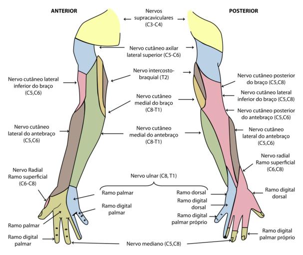 | Keywords: Gray812and814 - PT.svg  en The cutaneous innervation of the right upper limb Both areas supplied by the medial brachial cutaneous nerve are colored green The areas supplied by branches of the radial nerve are colored pink pt A inervação cutânea do membro superior direito Ambas as áreas supridas pelo nervo cutâneo medial são de cor verde As áreas fornecidas pelos ramos do nervo radial são de cor-de-rosa 2016-10-19 https //commons wikimedia org/wiki/File Gray812and814 svg Henry Gray 1918 Anatomy of the Human Body Olhar seção Livro no link da Fonte Bartleby com http //www bartleby com/107/ Gray's Anatomy http //www bartleby com/107/illus812 html Plate 812 derivative work Ederporto other versions <gallery> File Gray812and814 svg language en </gallery> cc-zero Gray's Anatomy plates SVG Gray's Anatomy plates Limbs SVG human nerves Sensory system NeuroMat images |