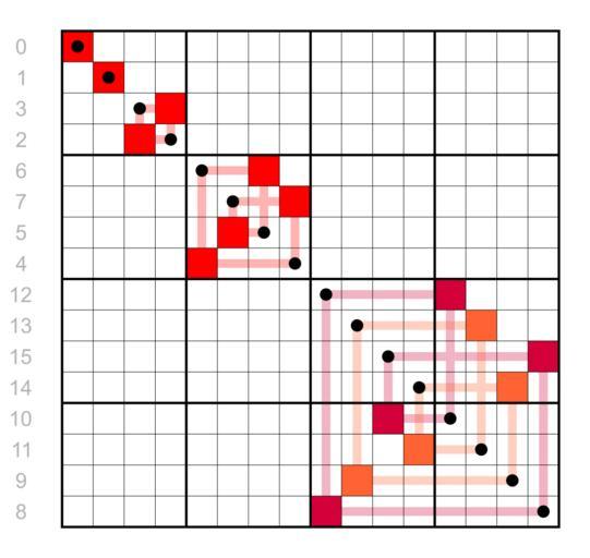 | Keywords: Gray code permutation matrix 16.svg P 0 15 T 0 1 3 2 6 7 5 4 12 13 15 14 10 11 9 8 T This matrix permutes numbers from 0 to 15 from their natural order into Gray code order own Mate2code Permutation matrices of 4-bit Walsh permutations Gray code |