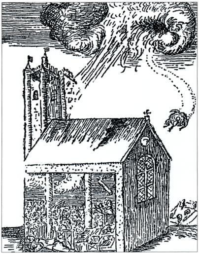 Keywords: Great Storm Widecombe woodcut.gif The Great Thunderstorm Widecombe Dartmoor Devon England which occurred in 1638 Contemporary woodcut Original artist unknown fl 17th century Scanned by me 2008-10-13 ca 1638 PD-Art Thunderstorms in art Churches on Dartmoor Ball lightning Widecombe-in-the-Moor |