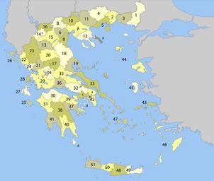 | Keywords: Greece prefectures numbered.png Greece prefectures numbered 1 Evros ομός Έβρου 2 Xanthi ομός Ξάνθης 3 Rodopi ομός Ροδό ης 4 Drama ομός Δράμας 5 Kavala ομός Καβάλας 6 Imathia ομός Ημαθίας 7 Thessaloniki ομός Θεσσαλονίκης 8 Kilkis ομός Κιλκίς 9 Pella ομός Πέλλας 10 Pieria ομός Πιερίας 11 Serres ομός Σερρών 12 Chalkidiki ομός Χαλκιδικής 13 Grevena ομός Γρεβενών 14 Kastoria ομός Καστοριάς 15 Kozani ομός Κοζάνης 16 Florina ομός Φλώρινας 17 Karditsa ομός Καρδίτσας 18 Larisa ομός Λάρισας 19 Magnisia ομός αγνησίας 20 Trikala ομός Τρικάλων 21 Arta ομός Άρτας 22 Thesprotia ομός Θεσ ρωτίας 23 Ioannina ομός Ιωαννίνων 24 Preveza ομός Πρέβεζας 25 Zakynthos ομός Ζακύνθου 26 Corfu/Kerkyra ομός Κέρκυρας 27 Kefallinia ομός Κεφαλληνίας 28 Lefkada ομός Λευκάδας 29 Etoloakarnania ομός Αιτωλοακαρνανίας 30 Achaia ομός Αχαΐας 31 Elis/Ilia ομός Ηλείας 32 Boeotia/Viotia ομός Βοιωτίας 33 Euboea/Evvia ομός Εύβοιας 34 Evrytania ομός Ευρυτανίας 35 Fthiotida ομός Φθιώτιδας 36 Fokida ομός Φωκίδας 37 Argolis ομός Αργολίδας 38 Arcadia ομός Αρκαδίας 39 Korinthia ομός Κορινθίας 40 Lakonia ομός Λακωνίας 41 Messinia ομός εσσηνίας 42 Attica ομός Αττικής a East Attica ομαρχία Ανατολικής Αττικής b Athens ομαρχία Αθηνών c West Attica ομαρχία Δυτικής Αττικής d Piraeus ομαρχία Πειραιά 43 Lesvos ομός Λέσβου 44 Samos ομός Σάμου 45 Chios ομός Χίου 46 Dodecanese ομός Δωδεκανήσου 47 Cyclades ομός Κυκλάδων 48 Iraklio ομός Ηρακλείου 49 Lasithi ομός Λασιθίου 50 Rethymno ομός Ρεθύμνου 51 Chania ομός Χανίων A Athos Άγιο Όρος Own 2007-12-22 Pitichinaccio Maps of prefectures of Greece Maps numbering |
