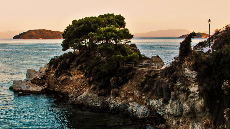 Keywords: greece skiathos plakes cape rock pines afternoon island summer landscape nature scenery tree horizon