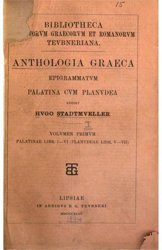 Keywords: Greek Anthology Stadtmueller 1894.jpg el Εξώφυλλο του βιβλίου Anthologia graeca epigrammatum Palatina cum Planudea 1894 Lipsiae in aedibus B G Teubneri Ed Hugo Stadtmüller en First page of Anthologia graeca epigrammatum Palatina cum Planudea 1894 Lipsiae in aedibus B G Teubneri Ed Hugo Stadtmüller 2013-11-02 23 21 32 http //dbooks bodleian ox ac uk/books/PDFs/N12115800 pdf Hugo Stadtmüller Custom license marker 2013 11 02 PD-old Uploaded with UploadWizard Greek Anthology |