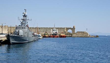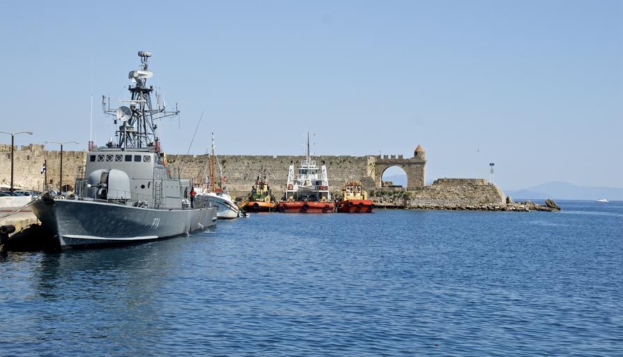 Keywords: Greek coast guard pushers Rhodes.jpg en a coast-guard missile launcher ship of the hellenic navy a fishing boat and three tugboats harbour of Rhodes island of Rhodes Greece One can see the turkish coast in background fr Un vaisseau garde-côtes lance-missiles de la Marine grecque un bateau de pêche et trois remorqueurs dans un des ports de la ville de Rhodes île de Rhodes Grèce On distingue les côtes turques au fond own Jebulon 2011-04-13 36 26 38 N 28 13 45 1 E Fast Attack Craft of Greece Ships in Rhodes 2011 in Rhodes Quality images by Jebulon Kolona Harbour Rhodes Cc-zero QualityImage |