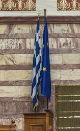 Keywords: Greek european flag plenty hall Vouli Athens.jpg en Greek and european flags in the plenary hall of the Greek Parliament in Athens Greece fr Les drapeaux grec et européen dans l'hémicycle du Parlement Grec Vouli à Athènes Grèce 2015-05-18 14 03 30 own Jebulon other versions 37 975313 23 737203 cc-zero Uploaded with UploadWizard Plenary Hall of the Greek Parliament Photographs of flags of Greece Photographs of flags of the European Union |