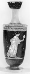 Keywords: Greek - Shoulder Lekythos with Woman Holding a Mirror - Walters 48258 - Side A.jpg This red-figure shoulder lekythos depicts a woman walking to the right holding out a mirror in her right hand She wears a chiton mantle and earring ca 460 BC Classical terracotta at shoulder cm 16 8 5 4 h x diam ; at mouth cm 3 6 diam ; at foot cm 3 75 diam accession number 48 258 15808 Joseph Brummer New York date and mode of acquisition unknown Henry Walters city Baltimore Walters Art Museum Henry Walters Acquired by Henry Walters 1925 place of origin Attica Greece Walters Art Museum license Ancient Greek red-figure pottery in the Walters Art Museum Shoulder lekythoi Media contributed by the Walters Art Museum needs category review Women in ancient Greek pottery |
