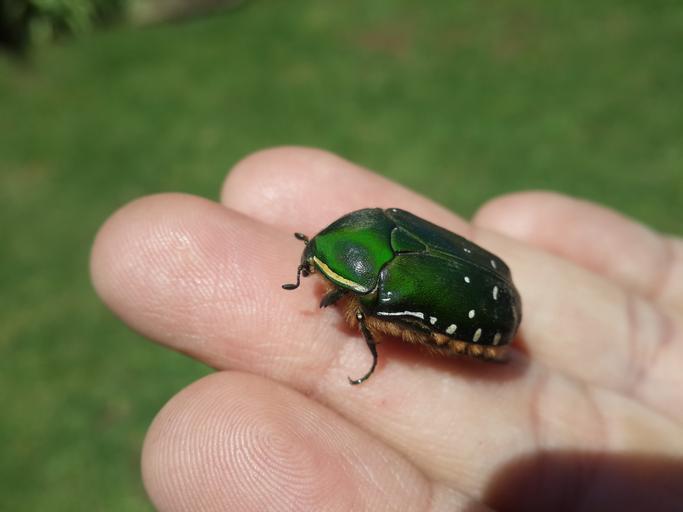 Keywords: green beetle green june bug insect nature hand descover animal world
