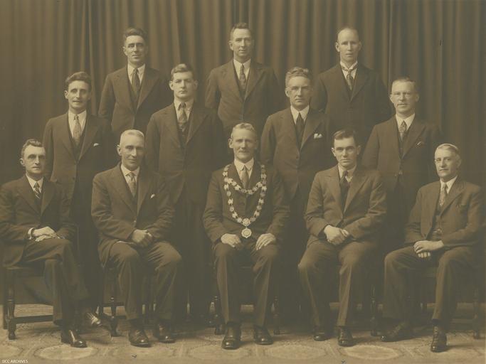 | Keywords: green island greenisland dunedin historic municipal groupshot people monochrome DCC Archives, Green Island Borough Series, 22/3/10 Back Row: V Pringle, E Hopewell, JC Russell Second Row: W Dickinson, A McGregor, TG Tomkins, JAR Brown Front Row: WO Smellie, GA Orange, T McAhan (Mayor), AL Burk (Town Clerk), FJ Williams (Engineer) DCC Archives, Green Island Borough Series, 22/3/10 Back Row: V Pringle, E Hopewell, JC Russell Second Row: W Dickinson, A McGregor, TG Tomkins, JAR Brown Front Row: WO Smellie, GA Orange, T McAhan (Mayor), AL Burk (Town Clerk), FJ Williams (Engineer) |