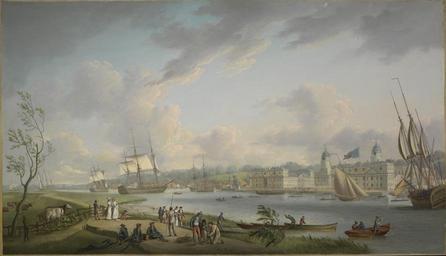| Keywords: Greenwich from the Isle of Dogs.jpg Artwork Creator Robert Dodd 1792 oil canvas cm 84 143 5 institution National Maritime Museum Not on display accession number BHC3867 object history credit line exhibition history 1 http //www portcities org uk/london/server/show/conMediaFile 4887/Greenwich-from-the-Isle-of-Dogs-by-Robert-Dodd html portcities org uk<br/>2 http //collections rmg co uk/collections/objects/15340 html Royal Museums Greenwich PD-old-100 DEFAULTSORT Dodd Robert; Greenwich from the Isle of Dogs; NMM Robert Dodd Paintings in the National Maritime Museum London Royal Borough of Greenwich in art 18th-century sailing ships in paintings Paintings of the Thames Isle of Dogs 1792 in London |