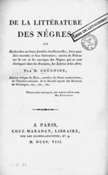 Keywords: Grégoire - De La littérature des nègres, 1808.jpg fr Henri Grégoire De la littérature des Nègres ou recherches sur leurs facultés intellectueles leurs qualités morales et leur littérature suivies des notices sur la vie et les ouvrages des Nègres qui se sont distingués dans les sciences les lettres et les arts Page de titre 2016-09-16 http //gradhiva revues org/docannexe/image/1477/img-4 jpg De La littérature des nègres de l ™abbé Grégoire édition originale 1808 Musée du quai Branly Henri Grégoire other versions PD-old-70-1923 Abbé Grégoire 1808 books Slavery Abolitionism |