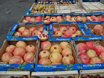 Keywords: Grenade.JPG fr Grenades sur le marché d'Apt Vauclue France own Véronique PAGNIER 2010-10-30 Market in Apt Punica granatum fruit Taken with Kodak EasyShare Z950