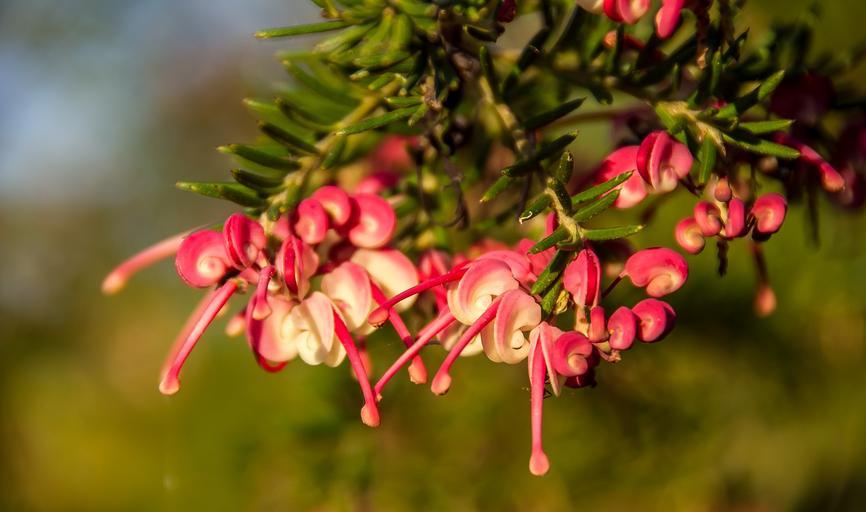 Keywords: grevillea flower australian native pink red white nectar shrub garden bloom delicate
