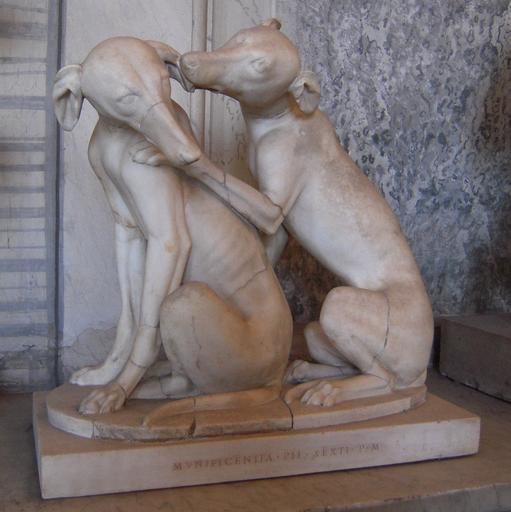 Keywords: Greyhounds playing, Vatican.jpg Group of greyhounds playing 2nd C BCE marble Museum musei Vaticani Museo Pio-Clementino Sala degli Animali An almost identical statue found at the same time and place is in the British Museum part of the Townley Collection object history from Monte Cagnolo near Lanuvio discovered 1774 accession number Inv 430 PD-old-100-1923 Photo Henry Townsend Museo Pio-Clementino - Sala degli animali Ancient Roman statues in the Vatican Museums Animals 2nd-century statues in the Vatican Museums Dogs in ancient Roman art Greyhounds in art in antiquity Sculptures of greyhounds Greyhounds in art alone Townley Collection Statues of animals in Rome dog |