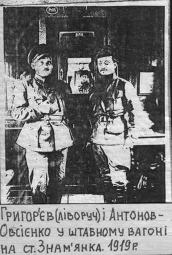 | Keywords: Grigorev.jpg  en Nikifor Grigoriev Г иго 'єв і Антонов-Овсієнко у штабному вагоні на станції Знам'янка http //rama net ua/ 1919 PD-old original upload log page uk wikipedia Grigorev jpg 2007-09-04 20 08 Leonst 337×500×8 47999 bytes <nowiki> http //rama net ua/ PD-Art </nowiki> Nikifor Grigoriev Vladimir Alexandrovich Antonov-Ovseyenko |