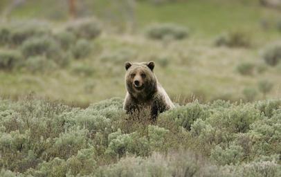 Keywords: grizzly bear wildlife nature wild carnivore sitting looking yellowstone national park america usa animal mammal fur
