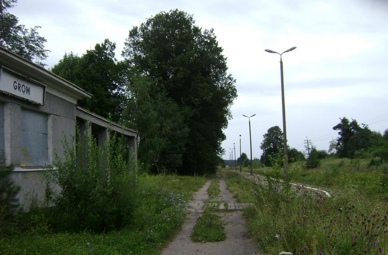 Keywords: Grom.JPG en Grom railway station pl Grom przystanek kolejowy own Albertyanks Albert Jankowski 2009-08-05 Grom railway station
