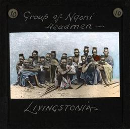 Keywords: "Group of Ngoni Headmen, Livingstonia" Malawi, ca.1895 (imp-cswc-GB-237-CSWC47-LS3-1-010).jpg en <br> Group of Ngoni Headmen Livingstonia Malawi ca 1895 Photograph showing a group of Ngoni Headmen or tribal or village leaders The men are pictured in tribal dress sitting on the ground ; The Ngoni people are an ethnic group living in Malawi Mozambique Tanzania and Zambia Their origins can be traced to the Zulu people of kwaZulu-Natal in South Africa Photographer Unknown Filename imp-cswc-GB-237-CSWC47-LS3-1-010 tif Coverage date circa 1895 Part of collection International Mission Photography Archive ca 1860-ca 1960 Type images Part of subcollection Photographs from the Centre for the Study of World Christianity University of Edinburgh U K ca 1900-ca 1940s Repository name Centre for the Study of World Christianity Archival file impaunpub_Volume7/1399 url Repository address The University of Edinburgh School of Divinity New College Mound Place Edinburgh EH1 2LX United Kingdom Geographic subject country Malawi Format aacr2 1 lantern slide 8 x 8 cm Geographic subject continent Africa Rights Contact the repository for details Part of series Elmslie of the Wild Ngoni LS3/1 Repository email divinity-CSWC ed ac uk Subject lcsh Keyword Tribes; Village communities Date created circa 1895 Publisher of the digital version University of Southern California Libraries Subject aat genre group portraits Format aat lantern slides Legacy record ID impa-m68390 Access conditions http //www ed ac uk/schools-departments/divinity/research/centres/world-christianity/collections-resources File GB 237 CSWC47/LS3/1/10 1895 author http //digitallibrary usc edu/cdm/ref/collection/p15799coll123/id/64520 PD-old-70-1923 Magic lantern images Images from USC Digital Library uploaded by Fæ International Mission Photography Archive ca 1860-ca 1960 History of Malawi Livingstonia Rumphi District 1895 in Malawi Nguni people |