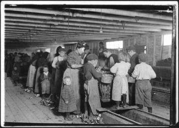 | Keywords: Group of oyster shuckers working in a canning factory. All but the very smallest babies work. Began work at 3-30am... - NARA - 523413.jpg Scope and content General notes 523413 Local identifier 102-LH-2050 Department of Commerce and Labor Children's Bureau 1912 - 1913 NARA-Author Hine Lewis Wickes 1874-1940 Photographer 1122914 <br /> Still Picture Records Section Special Media Archives Services Division NWCS-S National Archives at College Park 8601 Adelphi Road College Park MD 20740-6001 1911-03-02 Record group Record Group 102 Records of the Children's Bureau 1908 - 2003 Record group ARC 431 National Child Labor Committee Photographs taken by Lewis Hine compiled ca 1912 - ca 1912 documenting the period 1908 - 1912 Series ARC 523064 File unit File unit ARC Variant control numbers NAIL Control Number NWDNS-102-LH-2050<br /> Search Identifier siWhatsCookingUncleSam<br /> Search Identifier What's Cooking Uncle Sam Other versions <gallery> File Group_of_oyster_shuckers_working_in_a_canning_factory _All_but_the_very_smallest_babies_work _Began_work_at_3-30am _-_NARA_-_523413 tif tif File Group_of_oyster_shuckers_working_in_a_canning_factory _All_but_the_very_smallest_babies_work _Began_work_at_3-30am _-_NARA_-_523413 jpg jpg </gallery> NARA-cooperation PD-USGov Child labor in the United States |