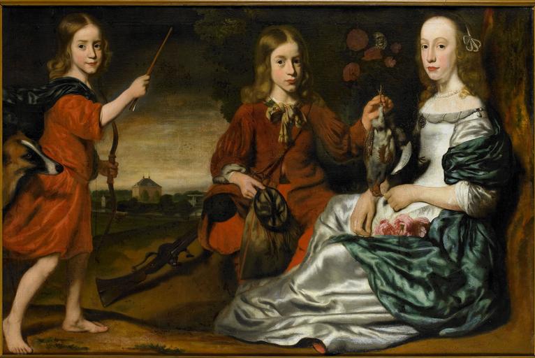 Keywords: Group Portrait of a Young Woman and Two Boys, Dressed as Hunters, in a Landscape by a follower of Nicolaes Maes Gemeentemuseum Helmond.jpg nl Groepsportret van twee jongens en een jonge vrouw in een landschap oil on canvas cm 108 165 Helmond Gemeentemuseum Helmond Ex Rijksmuseum Amsterdam SK-A-2869 ~ 1670 Institution Rijksmuseum Amsterdam accession number SK-A-2869 place of creation place of discovery object history exhibition history credit line http //geheugenvannederland nl/ /nl/items/RIJK01 SK-A-2869 PD-Art Paintings by Nicolaes Maes Paintings in the Rijksmuseum Amsterdam |