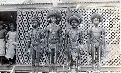 Keywords: Group of warriors in ceremonial attire, British New Guinea.jpg en Group of warriors in ceremonial attire British New Guinea Early real photo postcard c 1910's http //www oceania-ethnographica com/mel124 html unknown photographer circa 1910 's PD-old People of Papua New Guinea Postcards of Papua New Guinea People in the 1910s Warriors of Oceania |