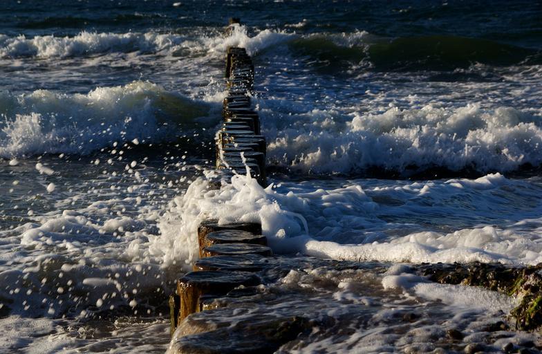 Keywords: groynes sea wave water foam spray nature baltic sea