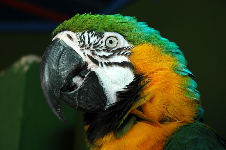 Keywords: Guacamayo - Ara Ararauna.JPG en Foreground of a blue-and-yellow macaw in Gran Canaria es Primer plano de un guacamayo azul y amarillo en Gran Canaria own Himarerme 2010-03-25 Ara ararauna heads captive Birds of Gran Canaria