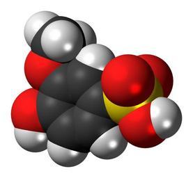 Keywords: Guaiacolsulfonate molecule spacefill.png Space-filling model of the guaiacolsulfonate molecule an expectorant drug C H O S 2012-07-21 own DS Visualizer Jynto more from this user Ball-and-stick version cc-zero Images by Jynto Respiratory system drugs Phenolsulfonic acids Hydroxyanisoles Space-filling models |