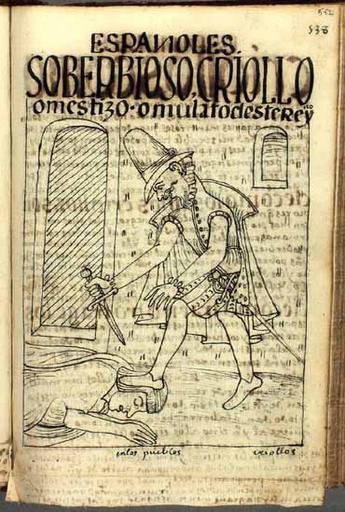 Keywords: Guaman Poma - Nueva crónica - Pag 538.jpg es Guaman Poma - Nueva_crónica<br/> Españoles soberbioso criollo o mestizo o mulato deste rreyno http //www kb dk/permalink/2006/poma/552/es/text/ Guaman Poma 1615 PD-old-100 Nueva corónica y buen gobierno Collections of The Royal Library Denmark |