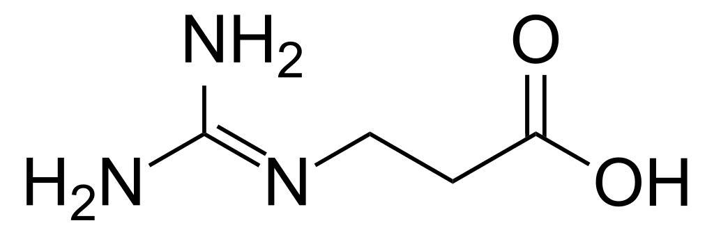 Keywords: Guanidinopropionic acid.svg Chemical structure of β-guanidinopropionic acid β-GPA Own 21 54 5 March 2012 UTC Ed Edgar181 Guanidines Carboxylic acids