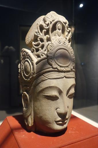 | Keywords: Guanyin Bodhisattva head, China, unearthed from Wanfo Temple, Chengdu, Tang dynasty, 618-907 AD, sandstone - Sichuan Provincial Museum - Chengdu, China - DSC04528.jpg en Exhibit in the Sichuan Provincial Museum 四 博物院 also known as the Sichuan Museum 251 Huanhua S Road Chengdu Sichuan China Photography was permitted in the museum without restriction This work is old enough so that it is in the public domain 2015-09-24 02 40 38 own Daderot other versions PD-old-100 cc-zero Sculptures of China in the Sichuan Provincial Museum |