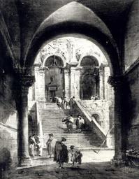 | Keywords: Guardi Palace Steps.JPG Artwork Creator Francesco Guardi The Courtyard of the Palazzo Ducale with the Scala dei Giganti seen through the Arco Foscari s 1770 oil canvas cm 32 8 25 8 Institution National Museum Warsaw Not on view accession number M Ob 2764 46612 object history ProvenanceEvent 1925-03-13 purchase National Museum in Warsaw Leon Kranc ProvenanceEvent 1939 theft Nazi Germany ProvenanceEvent 1943 transfer Sichow Silesia ProvenanceEvent 1945 transfer Art Repositiory Munich ProvenanceEvent 1980 deposit Heidelberg Museum ProvenanceEvent transfer State Gallery Stuttgart ProvenanceEvent 2014 restitution National Museum in Warsaw credit line The painting depicts the Scala dei giganti Giant's Staircase of the Doge's Palace Venice http //muzeumutracone pl/en/portfolio/palace-stairs/ muzeumutracone pl Catalogue of paintings removed from Poland by the German occupation authorities during the years 1939-1945 1 Foreign paintings / comp Władysław Tomkiewicz ; Ministry of Culture and Art Warsaw 1950 Editor Ministry of Culture and Art See also http //kolekcje mkidn gov pl/ Department of National Heritage Wartime losses an official webpage of Polish Ministry of Culture Art and National Heritage See below PD-old-100 DEFAULTSORT 1770s; Palace Steps Paintings by Francesco Guardi in the National Museum in Warsaw Recovered works lost in Poland during World War II Courtyard of the Doge's Palace Venice - Scala dei giganti Entrance stairs |