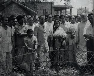 Keywords: Guest from West Bengal at Madical Hostel April1954.png বাংলা ১৯৫৪ সালের এপ্রিল মাসের সাহিত্য সম্মেলনে আগত পশ্চিম বঙ্গের সাহিত্যিক সুভাষ মুখ্যোপাধ্যায় দ্বিপ্তেন্দ্রনাথ বন্দ্যোপাধ্যায় দেবিপ্রসাদ চট্টোপাধ্যায় নরেন্দ্র দেব রাধারাণ দেব শান্তিরঞ্ ন বন্দ্যোপাধ্যায় মনো বসু প্রমুখ মেডিক্যাল হোস্টেল প্রাঙ্গণে শহ দ চত্বরে পুষ্প প্রদান করছেন।।<br>English April 1954 Flower offering to the martyrs' monument in front of medical hostel by Shubhash Mukharjee Diptendronath Banarjee Debiprasad Chatterjee Narendra Dev Radharani Devee Shantiranjan Banarjee Manoj Bose others from west bengal attending the literature conference Author's Album 1954-04 Prof Rafiqul Islam PD-Pakistan GFDL cc-by-3 0 Photos by Rafiqul Islam