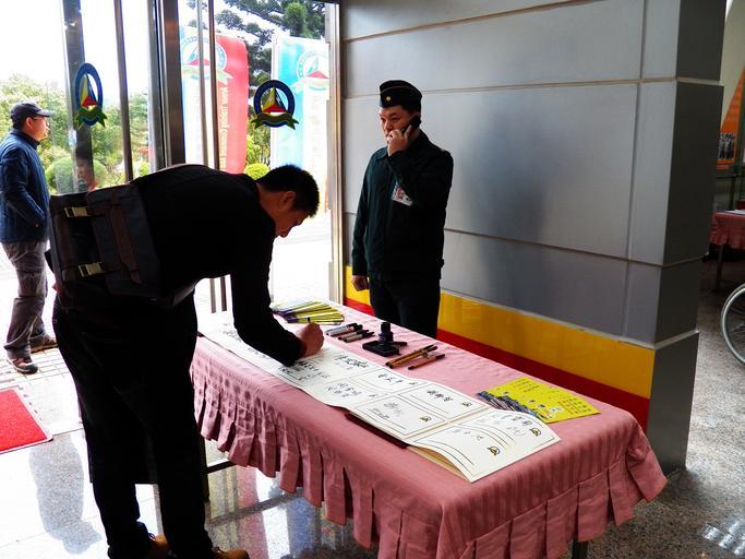 Keywords: Guests Register Stand in Entrance of Armor School Museum 20130302.jpg zh-tw 2013年 甲兵學校營 開放活動,校史館 樓大廳前的來賓簽到處 Own 玄史生 2013-03-02 2013 ROCA Armor Training Command and Armor School Open Day Guestbook signing Slouch men Men writing People with mobile telephones Men with bags Tables in Taiwan Tablecloths 玄史生写 文庫 Taken with Kodak EasyShare Z990 |