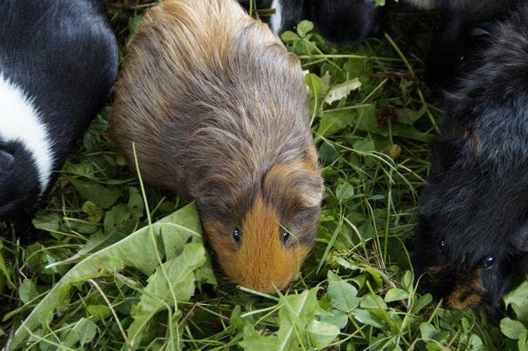 Keywords: guinea pig cute rodent pet small animal close cuddly fur soft button eyes animal husbandry green fodder feed feeding eat food