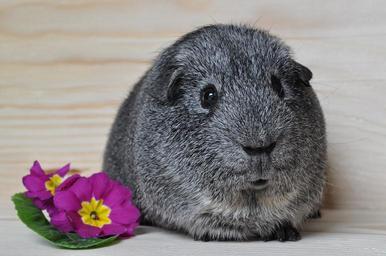 Keywords: guinea pig smooth hair silver black and white agouti flower flowers animal pet rodent nager