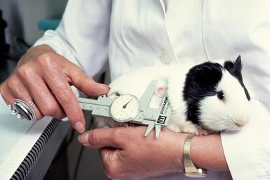 | Keywords: Guinea pig tumor sizing.jpg An experimental guinea pig being held by a technician Only the technician's hands and the animal are visible The technician measures the size of a reaction of the animal due to a recent injection Topics/Categories Animals Type Color Photo Source National Cancer Institute Linda Bartlett Photographer 1961 1980 Reuse Restrictions None - This image is in the public domain and can be freely reused Please credit the source and/or author listed above Linda Bartlett Photographer PD-USGov-HHS-NIH Media from National Cancer Institute Visuals Online Images uploaded by Fæ Animal testing Human hands holding cavies Experimental guinea pigs |
