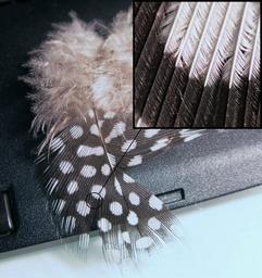 Keywords: GuineaFeather.jpg Feather of a Guinea fowl with up close Some bird 2005 User Ben_pcc Domesticated guineafowl Galliformes feathers