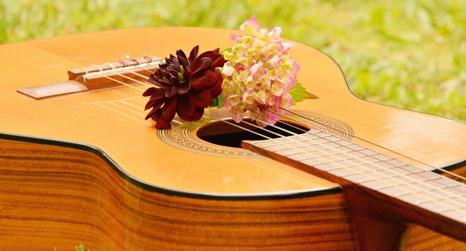 Keywords: guitar musical instrument music stringed instrument instrument acoustics wooden guitar floral greeting
