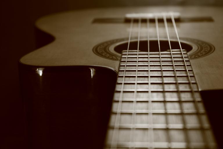 Keywords: guitar ropes instrument music wood musical sound sepia