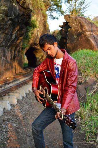 Keywords: guitarist boy pose scene song lyrics singer artist rail road rail rails train transport path tunnel sri lanka ceylon mawanella kadugannawa