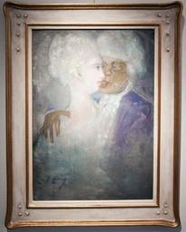 | Keywords: Gulácsy - A mulatt férfi és a szoborfehér asszony - with frame.jpg A_mulatt_férfi_és_a_szoborfehér_asszony Mulatto Man and Sculpture-white Woman Oil on canvas Private property own ; Photo by Szilas at the exhibition in the Gallery of Judit Virág Budapest Creator Lajos Gulácsy PD-old-auto 1932 Other versions Paintings by Lajos Gulácsy in private collections Artworks of Hungarian National Bank Depository Program | ||||